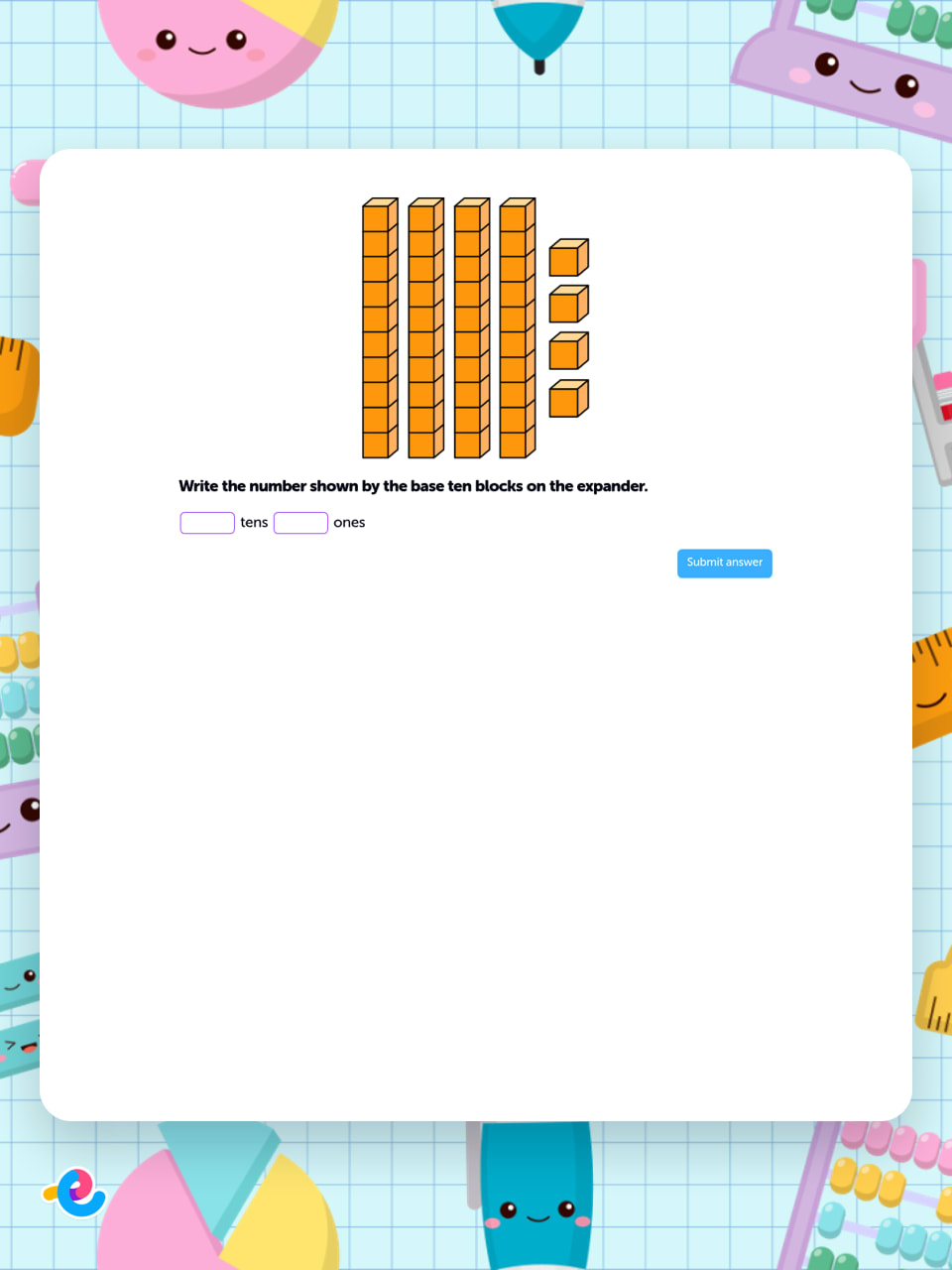 This interactive activity helps learners build a strong understanding of place value by focusing on how numbers are composed of tens and ones. The resource features a variety of question types, including drag-and-drop sorting tasks, matching numbers to their correct tens and ones, and fill-in-the-blank equations.